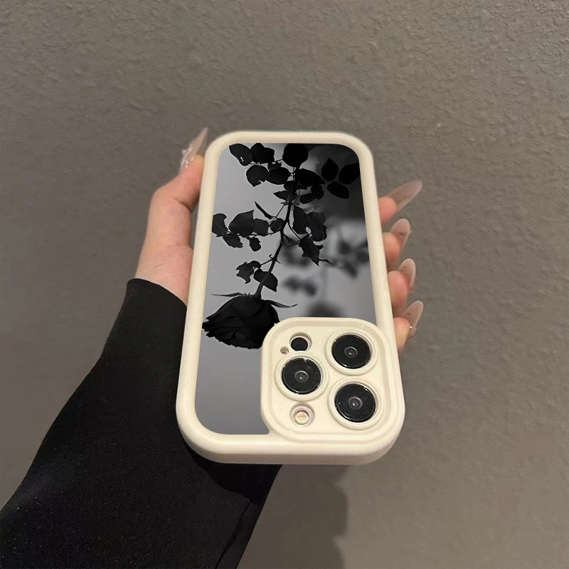 Tech Case Noir Rose™ minimalist black rose phone case for iPhone Note 14 Pro+, 13, 12S, 12, 11, 10, & 14C/13C/12C. Slim shockproof soft TPU protective cover with raised camera edges. Elegant dark floral aesthetic meets durable everyday design.